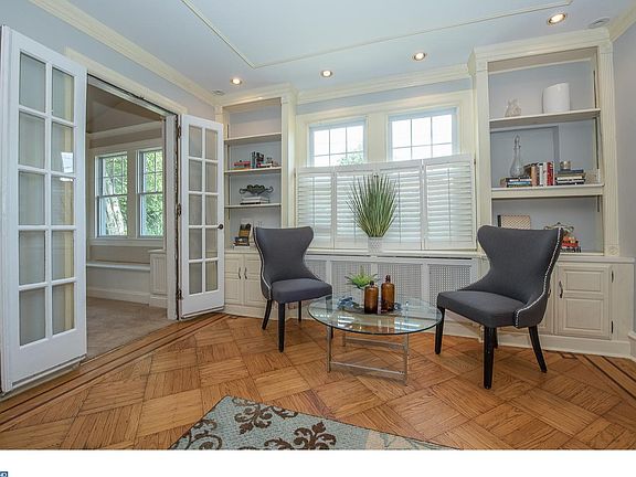 Look no further for that mix of charm and character with modern amenities! Beautiful Center Hall Colonial located on quiet tree lined Street. Spacious living room with wood burning stone fireplace, built in bookshelves and lots of natural light. Relax in the adjoining Den with built in's, window seat with storage, stone wall and many windows. Mudroom with slate floor features convenient rear entry, well organized coat/storage area, storage benches, powder room and rear exit to a fabulous yard. Gracious Dining Room features wainscoting, carved ceiling medallion and wall sconces. Relax, Dine or Chill in your 3 season enclosed porch which gives this home a great flow for indoor/outdoor entertaining and opens to the expansive wrap around deck. Handsome Cherry Wood cabinets in this Cook's Kitchen, Corian Counters, Stainless Back Splash, Gas Cooking with pot filler, built in microwave and stainless appliances opens to the deck and rear yard. This home features beautiful inlaid hardwood floors that add warmth and charm. Turned stairway with landing to the spacious upstairs. Rooms are large and closets are plentiful! Nice sized hall bath that has been partially updated. Don't forget the pull down steps to the attic, great for storage. Lots of room in the large unfinished basement, Washer, Dryer and laundry folding center and plenty of room for a workbench or a playroom. The grounds on this home are fenced and provide a serene space for relaxation, entertaining and backyard fun! Just in time for those Summer BBQ's. Detached garage with new roof. Additional features include newer Central Air, Hardwood Floors throughout, newer windows, Crown Molding, newer front and rear doors. Conveniently located to schools, shopping, local dining and train station. A quick commute to Center City, 476 and Turnpike make this home a must see!