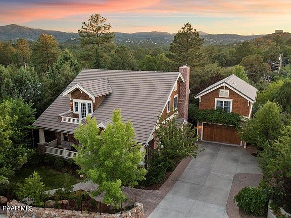 Incredible Craftsman home on historic Park Avenue in downtown Prescott, with GUEST QUARTERS! Extremely well build home in 2003, historical details include imported brick, hand carved stair banister, and detailed time period trim work. Recently remodeled with a gourmet kitchen, 6 burner gas range, walk in pantry, wine bar closet. All bathrooms reconfigured to maximize space/storage are ordained with marble and upscale touches. Main home (2667sq ft) has 3 upstairs bedroom, large walk-in closets, and a stately office with balcony. Main level has a dining room with sitting area, breakfast/kitchen living combo with newly updated gas fireplace, guest bathroom with original refinished clawfoot tub, large laundry/mudroom.(Owner Agent/ tour in features)