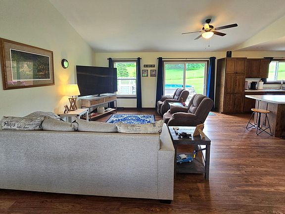 Beautifully updated walkout ranch home backs up to country. This home boasts an open, vaulted living area with custom-built kitchen cabinets, exquisite woodwork, and doors, along with modernized flooring, lighting, and more. The main floor is designed for comfort and convenience, featuring a spacious primary bedroom with a walk-in closet and ensuite bath, plus two additional bedrooms and a bath located across the way. The lower-level family room is spacious, complete with a second kitchen with walk out to LL patio or enjoy the upper-level patio. The lower level offers tons of storage and exercise room. Invite friends for fun by the pool with a serene country view. This property includes a 3-car heated attached garage, as well as a detached 28x28 heated 2-car garage with a ¾ bath, offering plenty of space for vehicles and storage. Located on the edge of Preston, this home offers an exceptional opportunity for tranquil living with modern amenities. All on 1.4 acres with country views!
