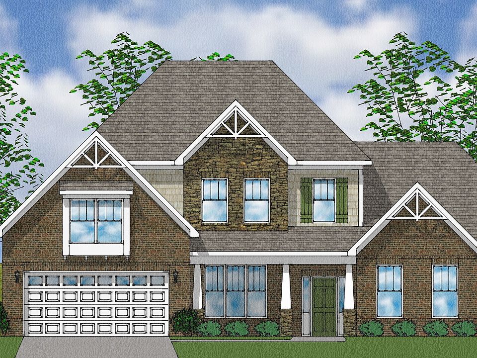The Bridges is a gorgeous five bedroom home with the master on the main, three-and-one-half baths, formal dining room and a spacious upstairs bonus room! You will love the large front porch upon entering the home's grand two story foyer. Beautiful hardwoods are throughout most of the main living areas which is also painted in a designer paint scheme of Repose Grey. Ten-foot ceilings add the perfect touch of grandeur as you walk in to the open concept floor plan. The kitchen is stunning with upgraded cabinets in Stone Grey, quartz countertops, a stainless steel farmhouse sink and GE profile gas range. The coveted first floor master takes up one entire wing of the home and includes a sitting area, huge walk-in closet and amazing master bath with separate vanities, large soaking tub, and separate ceramic tile walk-in shower. The other four bedrooms and bonus are located upstairs. Relax outside on the covered patio overlooking a beautiful yard with full yard Irrigation.