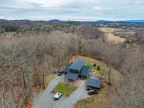 Welcome to Two Creeks Ranch ~ Off Grid Capable ~ This beautiful Luxury Cabin homestead, overlooking valley and mountains in Ellijay, awaits you. This 3 bedroom, 3.5 full bath, private, grand home, sunsets and views will not disappoint. Nestled down in the valley is the guest house, ranch, barn, natural spring fed pond, natural spring stream on acreage, babbling creek, shooting range, and more. The main home features on first level: Master bedroom, 2 ensuites, powder room, large living room, kitchen with breakfast bar, gas stovetop, oven and convection microwave and dining area. The views out of the dining area and off the covered large back porch are magnificent. Upstairs features: A spacious loft with views and 2 good size bonus rooms. Newly installed 15K fiber lines, with 2G potential and a tankless water-heater. Enjoy this multi-use yard to your enjoyment with views, fire-pit, fruit trees, strolls, storage buildings, and more. Main house is already set up with a Generac generator, well house with storage, natural spring, heat source, and septic. Could function off grid per homeowner. Guesthouse features: 1 bedroom, living room, office area, kitchen and full bathroom. Below is a huge workshop, recreation room or large garage. The guesthouse, also known as Rally Point Cottage, was Airbnb for 12-15 days per month and averaging $3000 per month income. The guest house is wired for a generator, has a well house and storage, septic, natural spring and heat source. The property includes a new barn with electric and water, natural spring fed stocked pond, chicken coop (oval office), duck coop (duck & cover), and The Goat Locker. 7 Road-Island Red chickens, 3 ducks and 2 goats can remain. Fresh eggs daily and organic entertainment. Welcome Home!