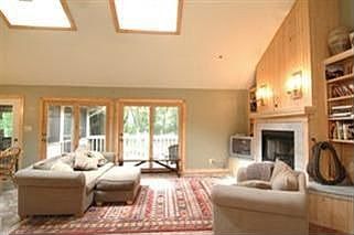 A short stroll to Michiana beachs from carefree cedar home on spacious wooded site. Stone hearth fireplace, vaulted ceiling, screen porch, sprawling deck, white oak floors, skylights, pine cabinetry, master suite. Summer, Fall, Winter, Spring, a haven in Michiana.