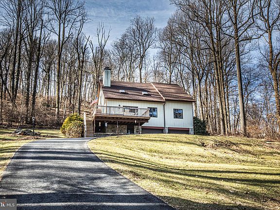 Charming contemporary on almost 2 full acres. Total privacy and seclusion greet you as you pull up your driveway. Secluded yet close to all of today's conveniences. Main floor has soaring cathedral ceilings, lots of natural light, and an open floor-plan. Beautiful stone fireplace in the living room has a slider leads you to the deck which has great views of the surrounding area. Main floor also features a nice kitchen with new center island, lots of cabinet space, a spacious living room, full bathroom, dining room, and laundry. Upstairs there's an owner's suite with a beautiful tile updated bathroom, also accessible from the hall, plus 2 additional bedrooms. The daylight walkout basement is partially finished, has a pellet stove, plus a 2 car garage. If you want a unique home, on a private piece of land, this is it, schedule today, this one won't last.