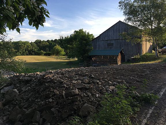 Scenic 4 acres, ready to build featuring a barn and a fieldstone garage. Perc tested, state approved rough driveway, good well, electric service, new roof and overhead door on garage(2021). Barn partially restored. Zoned residential, agricultural and business.