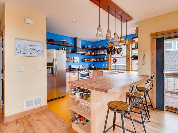 Gorgeous, custom home built in 2015 in the heart of old town Lyons! Incredible, coveted neighborhood borders open space w a high walkability rating to local cafes, parks, trails, schools, bus, & river! You'll love the bright & open floorplan w plenty of sunlight, huge windows, hardwood flooring, stainless appliances, & fabulous custom woodwork including a floor to ceiling built-in bookcase! Detached studio w alley access can convert to one-car garage or add another space. This place is AWESOME!