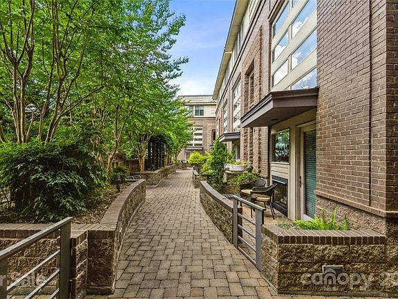 420 Queens Road is a sophisticated condo complex consisting of 10 upscale townhome-style residences in the heart of Myers Park. Just a short block walk to Novant and short trolley ride to Uptown and walking distance to Midtown and CMC. Designed by Anderson Pearson, the complex features an elevated lush open-air courtyard, a gated garage with deeded parking spaces and storage, and 10 separate private entrances. Unit 8 is a large 1874 sqft, 3 bdrm/2.5 bath corner unit with a large wrap-around terrace featuring a gas fireplace and stainless-steel grill. Freshly painted, rich hardwoods, black granite counters, modern glass backsplash, 42’ maple cabinets, fireplace. A grand 2 story master bedroom with a walk-in closet. Bathrooms feature mosaic ceramic tile baths, sleek frameless showers, glass vessel sinks, ‘Rain Cloud” showerheads, and one chromatherapy air-jet tub. (2) 13 SEER heat pumps. Well maintained building with recently improved roof, siding, and garage door.