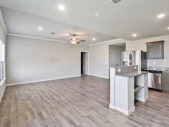 Upscale duplex in well maintained neighborhood with Dog park. Home features durable ceramic tiled flooring in main living spaces and carpet in bedrooms. Large back patio space extra concrete was poured to more than double the concrete space in the backyard. Fenced in backyard and extra parking next to the house. Granite countertops, Double vanity in primary bathroom, with walk-in closet. 9ft trayed ceilings in living space and the primary bedroom. Stainless steel appliances and a gas range included!