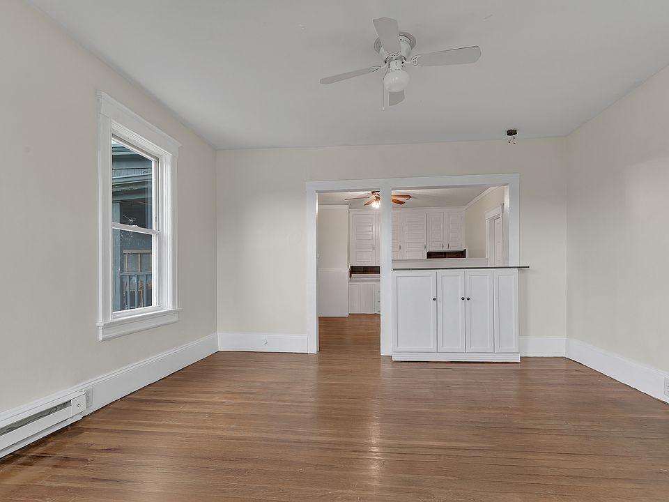 This freshly painted third-floor, 2-bedroom, 1-bath apartment offers a wonderful galley kitchen, spacious dining area and living room, and a modern tiled bath. It's a great space. There is a private deck overlooking Rathbun Street and another shared deck off the hall. Enjoy off-street parking and a convenient location with quick access to downtown, nearby entertainment venues, dining, and shopping. A comfortable, move-in-ready place to call home. Don't miss this opportunity. Apply today!
