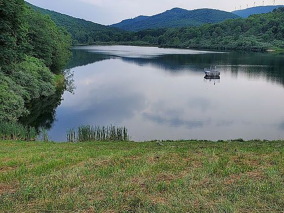 Stone and cedar home built into the side of a mountain. Incredible views from every window.