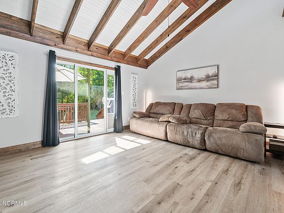 Welcome to this charming 3-bedroom, 2-bathroom home located in the highly sought-after Riverwood Estates subdivision of Jacksonville. This spacious property offers the perfect blend of modern living and cozy comfort, ideal for anyone looking to settle in a peaceful neighborhood. As you step inside, you'll immediately notice the stunning wood beam details and grand vaulted ceilings that create an open and airy atmosphere throughout the home. The expansive living room is filled with natural light, making it the perfect place to relax or to entertain. The kitchen features sleek, easy-to-maintain LVP floors and ample counter space for meal prep. The adjacent dining area offers a comfortable setting for meals and gatherings. Each of the three bedrooms is generously sized, with the primary suite offering a private bathroom for ultimate convenience. The home's private backyard is a peaceful retreat, providing plenty of space for outdoor activities, barbecues, or simply enjoying the serene surroundings. Whether you're hosting or seeking quiet solitude, this backyard is a great place to unwind. Located in Riverwood Estates, you'll enjoy a family-friendly environment with easy access to local shopping centers, dining, and entertainment. The neighborhood offers a calm suburban feel while being just a short drive away from all the amenities Jacksonville has to offer. This beautiful home at 420 Ridge Road is ready to welcome you. Don't miss out on the opportunity to make this place your next home. Schedule your tour today!
