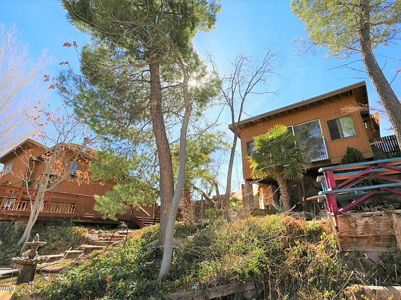 One of a Kind, River Property located in a quiet neighborhood in Clarkdale! This Artist Home boasts fantastic private views overlooking the Verde River, countryside, and quiet area; which you can enjoy from the expansive wrap around deck, sunny upstairs loft bedroom, or the many other incredible places around this expansive property. Home of Artist Gilliz who created a sculpted & tiled, heated mermaid pool, and waterfall attraction. 5 level home with 2x6 construction. Equipped with an incredible private well, and an additional parcel of land to give you a total of over half an acre of privacy. Your choice if you enjoy swimming, fishing, kayaking, or watching for wildlife. **See more details in Supplement**