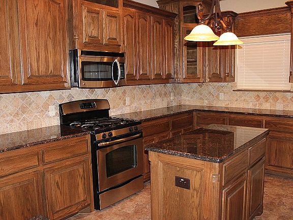 Wonderful, still like new home, only 6 months old! 4 bedrooms, 2 baths with a 3 car garage on nearly an acre and with a great open floor plan. Big yard with covered patio and a cedar fence with metal posts. Spectacular kitchen with granite counters, corner pantry, stainless appliances including refrigerator. Custom cabinets and trim throughout. Master suite with walk-in closet that leads to laundry room. Gas log fireplace plus landscaping. Brand new water softener. Additional matched brick 2 car insulated garage built in 2017 with 350 sq foot upstairs living space. (Gas and electric) 2020 expanded patio with outdoor fireplace as well as a wood fire pizza oven.