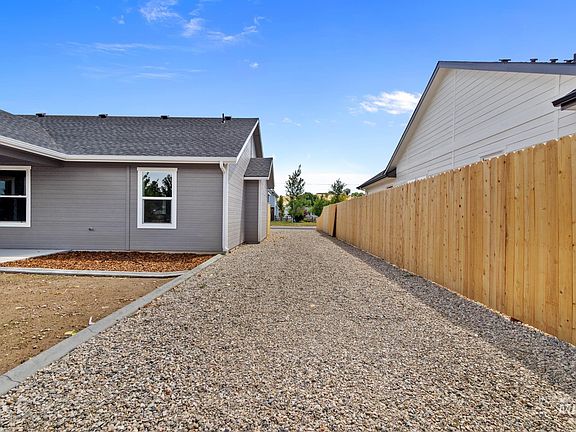 This beautifully designed, open floor plan home, features vaulted ceiling, natural lighting, luxury vinyl flooring through out home, with the exception of carpet in three bedrooms. stainless steel appliances and quartz counter tops. Great detail to everything from the trim work to the landscaping. The back of this home faces west, with a view of the sunset. This almost half acre lot and no CC&R's makes the options endless. Front of home includes landscaping and sprinklers, curbing along the gravel drive/RV parking on the south side of home. Back yard and sprinklers are 24ft. out from the back of home. This home is a must see to appreciate!