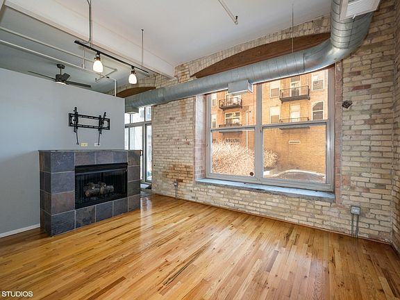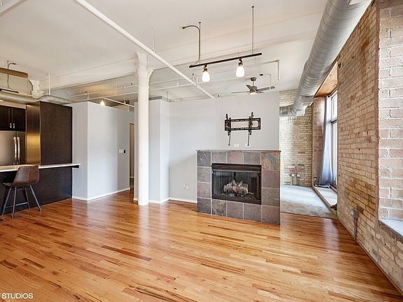Awesome 2 bedroom/1.5 bathroom loft-style condo available at Gotham Lofts in the West Loop. This unit features exposed brick, hardwood floors, gas fireplace, 10ft ceilings and tall windows with plenty of sunlight. The private balcony overlooks the quiet courtyard. Updated kitchen with white quartz countertops, tile backsplash, custom cabinetry (including pantry) and stainless steel appliances. Convenient in-unit laundry. Great location close to the Old Post Office, The Loop, Metra & Amtrak trains at Union station and steps from the Clinton Blue Line stop. Easy highway access to both 90/94 and 290. Building has a large, 24 hour fitness room, rooftop deck, bike storage and a courtyard. Additional storage cage included. Small dogs under 25lbs allowed with additional fee. Available 4/1/2026. Video tour available upon request.