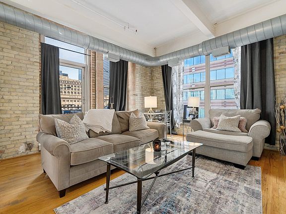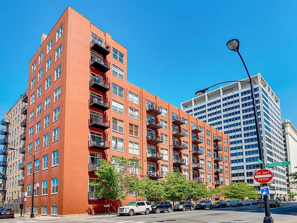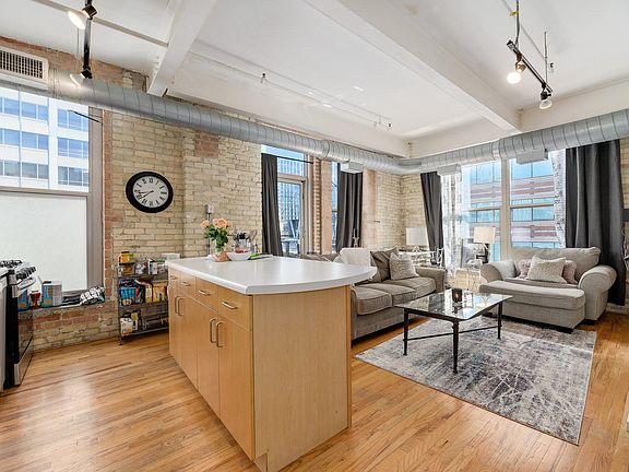 Corner split floor plan 2 bed 2 bath condo at Gotham Lofts featuring a large sunfilled living room with exposed brick and gas fireplace. Open floor plan, large windows, very spacious bedrooms, hardwood floors in the living area, balcony off the living room, kitchen with floating island. Large primary bedroom with great closet space and double vanity bathroom. The second bedroom can easily fit a queen or king bed. HUGE entry closet with In-Unit Washer/Dryer. Building features common rooftop deck with beautiful views, exercise room, bike room, on-site manager. Walking distance to Blue Line, Union, and Ogilvie Stations and easy access to I-90/94 and I-290. Enjoy nearby Randolph Street's Restaurant Row, Fulton Market, Whole Foods, and Mariano's. Tenant pays for gas, electricity, cable/internet. $1,000 non-refundable move-in fee in lieu of security deposit. $150 non-refundable move-in/out fee to the building, $350 refundable elevator fee.