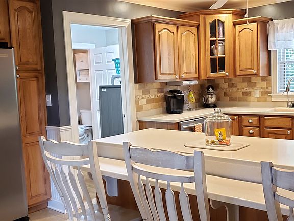 3 bedroom, 2 and 1/2 bath Bedford Stone Ranch with fully finished walk-out basement, attached 2 car garage AND 2.5+ car detached garage on 1.5 partially wooded acres. There are 2 patio areas - one patio located on the side with the 2nd out back. BOTH patios have French doors that open to a tiled breezeway with a vaulted wood ceiling. This breezeway connects the home to the attached garage and makes a great flow for outside entertaining. There are beautiful hardwood floors throughout the main floor with tile in the kitchen, breezeway, and bathrooms. Main floor kitchen and laundry, PLUS SECOND kitchen and laundry in the finished walkout basement. The updated kitchen on the main floor has custom oak cabinets, stainless steel appliances, reverse osmosis water purifier, water softener and solid surface counters with bar seating for 3. The main floor laundry room and half bath are located just off the kitchen. Formal dining room has a bay window with window seat and lots of light from windows on all 3 sides. The covered front porch leads to the formal living room with Bedford Stone wood burning fireplace. The master bedroom with master bath features a tiled shower with wall jets, built-in storage cabinet, and lots of counter space. BEDROOMS ARE HUGE! The 3rd main floor bedroom is currently used as the main floor laundry room with half bath. This area could easily be converted back to a 3rd bedroom without closet if one was needed on the main floor; however, there is a 4th bedroom and full bath in the walk-out finished basement. The finished basement also has a fully applianced 2nd kitchen with large bar seating for 4, living room/rec room, 2nd laundry room, and a separate room that has block walls which makes a perfect storm shelter. There are 2 hot water heaters - one gas, one electric - for a nearly endless supply of hot water! 200 amp service to the home and 200 amp service to the detached garage. New aggregate concrete patio and walkways out back with hot tub included. Replacement windows throughout and newer 2 dimensional shingle roof! All appliances and home warranty included for buyer's peace of mind.