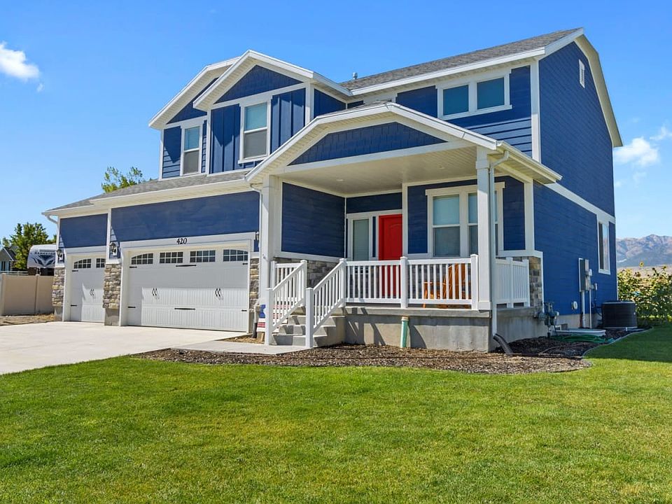 Beautiful 4 bedroom 2 1/2 bath 2 story home. Includes a HUGE 4 car garage. Modern design with a lot of upgrades. Huge lot (.7) with plenty of room to grow. Very large landscaped lawn. Dream kitchen. Beautiful master bedroom, with a walk-in closet sure to make anyone jealous. Walk-in shower, and vaulted clings throughout the house. Upgrades appliances. Granite countertops. Upgraded cabinets. Large back covered patio. 35 min drive from SLC. AMAZING views.