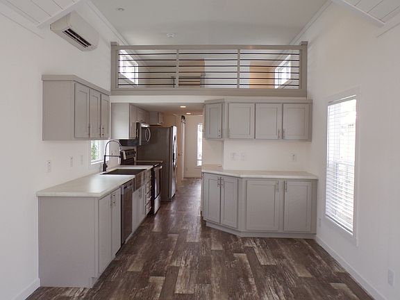 Entertaining is easy in this 1-bedroom cottage. The kitchen offers extra cabinetry and counter space, and the living room features a built-in entertainment center. The loft can accommodate guest sleeping or additional storage.