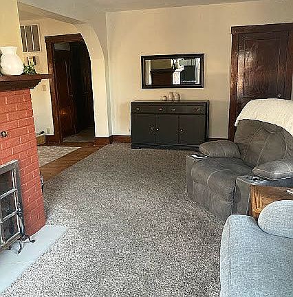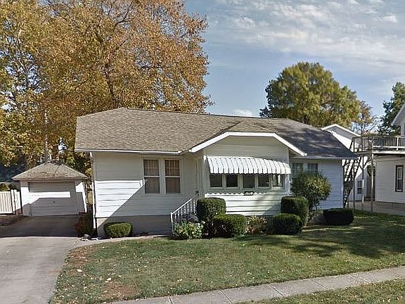 Nice cozy two bedroom, one bathroom home with enclosed front porch in a great neighborhood. Situated within walking distance between both the public high school and elementary school. Walking distance to downtown. Partial unfinished basement. Small garage with overhead door. Nice landscaping. Fireplace is non functioning as a wood burning fireplace. New roof (2014), new central heating & air with all new duct work (2014), new electrical throughout with all new light fixtures (2014), new side entry door (2017), new basement steps (2017) new living room picture window (2018) Pictures are from just before we moved out so the house is empty at the moment.