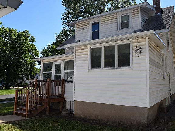 This home is as near "perfect" as a home can be. Like a lot the freshness of this homes white vinyl siding - the outstanding curb appeal on the detached garage & the clean- perfect concrete side walks. A Handicap ramp on the front of the home is great- perfect if needed - at the same time you could remove it. Light fresh pine in color engineered wood flooring throughout the main floor- looks so fresh! A nice entry staircase and large living room greet you at entry. Charming arched door ways welcome you into the front all season sitting room and into the formal dining room which features custom built in drawers. Like a lot the large kitchen with lots of cabinets, a back entrance enclosed 3 season room so inviting! Upstairs has 2 nice bedrooms - 1 of the rooms has an x- large wall of closets. Home has 1.5 bathrooms. 1/2 on main and large bath up. The garage will sell this deal-2.5 oversized-a "deal maker"! This home sparkles & shines- Its Charming-it's- fresh- it's cute!