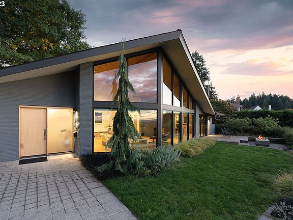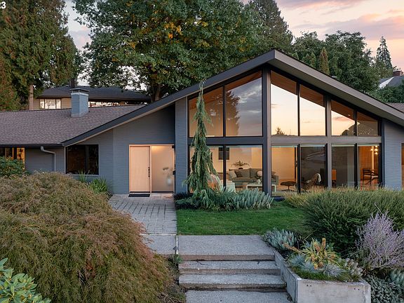 Mt Tabors most iconic Mid Century Modern home with a sensitive level up renovation by renowned local architect Risa Boyer.Perched up on the most desirable lot in Asbahr Heights,this famous MCM enjoys the most stunning panoramic views of downtown and the west hills. Soaring vaulted tongue and groove fir ceilings with a wall of windows expand to flood the space with natural light and provide exquisite sunset views.The double sided gas fireplace seamlessly connects the open dining to kitchen space with the living space,the dining space features custom walnut cabinetry at the wet bar with a stunning Ann Sacks tile backsplash and a wall of folding glass door that connects the outdoor dining&lounge space in.The chefs kitchen features a Wolf induction cooktop, subzero refrigerator, custom walnut cabinetry designed by On The Level with Schoolhouse hardware,and a large central island.The adjacent eating nook connects to the informal living space featuring custom walnut built in benches and a sliding glass door to the backyard with a large, private patio and yard space.The primary suite on the main level features high end custom walnut built ins, designer finishes throughout, a gas fireplace and a free standing soaking tub.Enjoy one level living with the additional bedrooms,office, updated baths and laundry all on the main level.An additional living space with a bedroom, bath, living space and exterior entrance is attached and on the main level as well.The lower level is comprised of an oversized tuck under garage, and 1,200 sq ft of flex space with high ceilings. Surrounded by a beautiful landscape designed by Lilyvilla Gardens with an integrated concrete firepit, built in seating that overlooks the city views while maintaining privacy.All of the details in the improvement and restoration of this unique,high end property were carefully considered by the architect and owner with no expense spared. [Home Energy Score = 1. HES Report at https://rpt.greenbuildingregistry.com/hes/OR10213802]