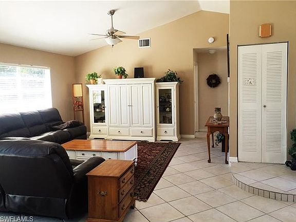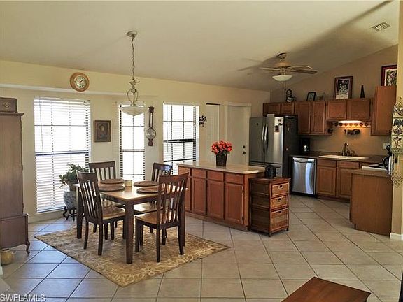 Open air floor plan and high vaulted ceiling and tile designed with family and entertaining in mind. Island Kitchen accented with Oak cabinets and Top of the Line Stainless Steel Appliance Package. 3 bedrooms and 2 bathrooms with a split floor plan recently updated with new Bamboo and Pine Laminate flooring accented with fresh paint. Serene water display and mature Royal Palm compliment this large corner lot with fenced yard and sprinkler system. Large 2 car garage features Washer and Dryer for convenience. Lowest price home in a very well established neighborhood. This home is a MUST SEE!
