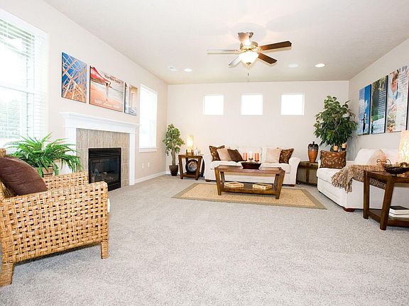 Snowbrush is an efficiently-designed, oversized single level home offering space and comfort. The open kitchen is designed with a large island, plenty of cupboard storage and counter space. The expansive living room and adjoining dining area complete the eating and entertainment space, with the added appeal of a covered patio area off of the vaulted great room and dining area. The spacious master suite sits separate from the other 2 bedrooms and den. Full landscaping and rear fencing included. Relax at the Villa's 55+ gated community/