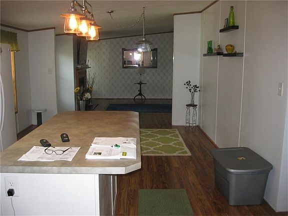 country living in convenient location ,well maintained with many updates ,newer furnace , high grade laminate flooring thru out ,skirting redone, appliances stay ,only seven years old , second owner , out side pavilion , chicken coop , small building over well, second garage 12 x 20 , for parking or storage . three stall heated garage with a full bath and man cave, 21 x 10 deck ,over four acres private and wooded ,with view of field in rear , was a camp ground previous , has hook ups for relatives with a camper, home and garage heated with free gas , quite a plus