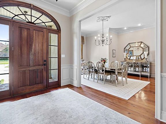 Beautiful, Well Maintained French Provincial Home in desirable Southdown Subdivision. The 11-foot ceilings add an extra touch of grandeur, making the home feel even more spacious and inviting. Natural light floods the entire home, thanks to the abundance of windows that allow the sunshine to pour in. The interior features old Chicago brick and elegant heart of pine floors that add warmth and character to each room. Living room offers crown molding with custom built in entertainment center/cabinetry and gas fireplace. The kitchen features custom Old Chicago brick archway, breakfast bar, double oven, 5 burner gas cooktop, stainless steel appliances, granite countertops, ice maker, walk in pantry, and abundant cabinet storage. Primary bedroom is a true retreat, offering a peaceful sanctuary where you can unwind and rejuvenate. The bathroom boasts dual vanities, granite countertops, extra-large shower and separate tub, custom cabinets and millwork. Office or Guest Bedroom with full Guest Bathroom downstairs and 2 additional Bedrooms upstairs with oversized closets. Entertainment is easy as you flow out the back to the covered porch overlooking the large private back yard that backs up to green space.