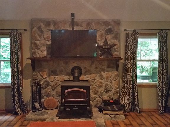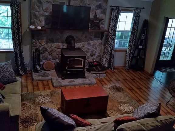 Custom built updated/remodeled four bedroom 2.5 bath home on almost 3 acres. Acreage backs up to lake. Featuring all new flooring throughout home, including ceramic, custom wood and carpet. Newer appliances, refinished cupboards and granite countertops in a cook's dream kitchen! New front porch and rear deck with pool (can be removed). Great room features floor to ceiling fireplace with newer wood burner that can be used to heat home. Outside wood boiler can also be used to heat home. First floor master w/additional 2 bedrooms on first floor. Master has large soaking tub. Upstairs loft & 1 additional bedroom. Full basement. Whole house generator.. Water filter is leased. Propane tank will transfer with the home. Country lovers dream but close to 33 access. USDA eligible .