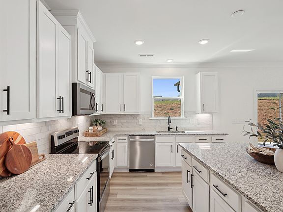 This beautiful, two-story ENERGY STAR certified home provides spacious living areas to enjoy. Features durable Allura™ fiber cement siding and Ply Gem® low e insulated windows. Inside, discover an open floor plan with luxury vinyl plank flooring on the entire first floor. Your guests will marvel at the stunning entry view with an oak staircase and wrought iron open stair rails. The large kitchen features stainless steel Whirlpool appliances, granite countertops, large island and shaker-style cabinets. The primary suite showcases an oversized closet and adjoining bath that boasts an enclosed water closet, dual-sink vanity and large tiled shower. Relax and enjoy the privacy of your large backyard featuring a covered, screened porch and open patio for grilling.