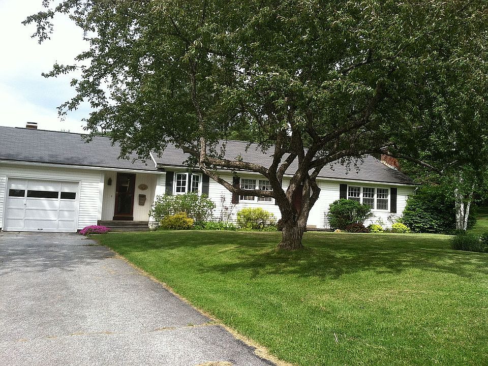 Quality constructed home, beautifully landscaped 3 br, 2 lr, dr, 2.5 baths,laundry room. Sunny, newly painted & lovely hard wood floors. Fireplaces located in one living room & basement. The woodstove is in the family room. Large cobblestone patio surrounded by lovely flower gardens. Large barn equipped with electricity, phone & air compressor capability. Near downtown with a country feel.