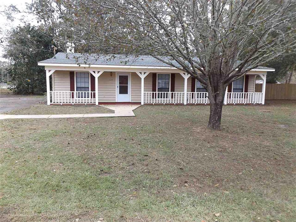 Built 1981 but Effective Age of home per Certified Appraisal on 12/19/17 is 5 years and 1367 square feet. Huge corner lot! Per Seller, new roof 5/2016 and the following new as of 12/18/2017; all interior doors, all window screens, sliding patio door, front storm door, stove, dishwasher, all light fixtures, bathtubs and shower walls, faucets/shower heads, toilet, smoke detectors, plugs, receptacles, plates/switches, overhead fan/light fixtures, carpet in bedrooms, Traffic Master Lake Shore Pecan laminate flooring in living room/hallway, entire interior walls texture painted, all ceilings texture painted, kitchen cabinets painted inside and out, new hardware, same for master bathroom, new vanity in hall bath (fake drawers due to piping configuration), new baseboards, trim and shoe mold, exterior completely painted, wood burning FP in LR, large laundry room with door to outside. AC unit maintained twice yearly, 1 free maintenance service transfers to new owner. Huge backyard with privacy fence and double wide gate, room for boat, RV storage, pool or out building. Property has enough room to build a garage and a Mother in law unit IAW City of Foley requirements. Plenty of off street parking. There are only 2 homes on this block. Close to all, 20 minutes to beach. Current homeowners insurance quote incl wind/hail w/5% deductible less than $1000 annual. Property taxes will be half current with owner occupancy. Termite bond transfers, renews 12/2018.