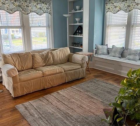 This is the home you have been waiting for! Beautiful hardwood flooring on the main floor captures your eye as soon as you enter this home. The built-in bookshelves and custom-built bench seat with storage add so much charm to this living room. The hardwood flooring can be found on most of the main floor and the consistency from the living room to the dining room gives it continuity. The dining room offers a closet and easy access to the large country kitchen with a cathedral ceiling and skylights. The added island is a custom feature you will enjoy for functionality and dining. The adjacent room could be converted to a bedroom, or can remain as a sitting room or eat-in area off of the kitchen. There is a bonus feature of this home, which is a main floor bedroom and bathroom, The upper floor offers two additional bedrooms and a full bath. The sunroom on the main floor will be your favorite place to decorate and enjoy. The sellers are selling this home as-is, and the CO and any repairs will be up to the buyer to complete. Do not be afraid to check the condition, as you will be pleasingly surprised by your viewing. ONLY cash and conventional transactions will be accepted.