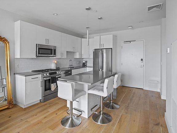 Discover an exceptional living experience at The Mezz! Primely located on West Broadway, this stunning furnished 1B/1B unit offers captivating city views & abundant natural light. Its open concept layout showcases a modern kitchen w/ Bosch appliances & a center island with seating for three. Spacious living room & bedroom with a custom W.I.C. In-unit laundry & central heat/AC. Rent includes 1 full-size on-site garage parking space! Building Amenities: Elevator, Clubroom Lounge, Rooftop garden with two-tier patio & outdoor grilling. Steps to Redline/Broadway T. Flexible move-in date.