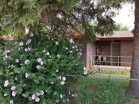 Super location for this Sturdy block home, and so many trees that the whole home is shaded most of the time. 3 big bedrooms and 2 baths with a roomy living room. The garage has been converted to living space, but could be easily converted back. The garage door is still there. Apple, peach, pear, and apricot trees, besides Pine trees and Catalpa trees. Yard has a sprinkler system and is completely fenced.