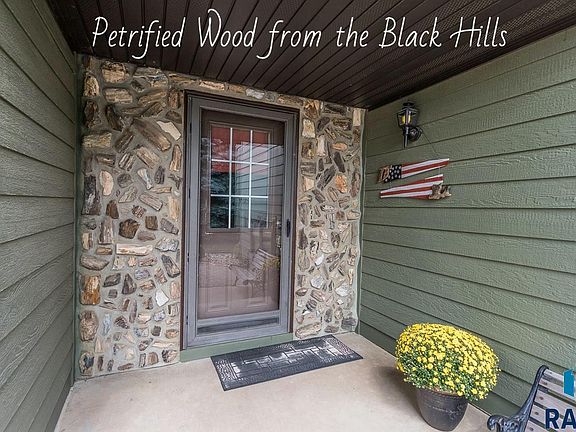 Pride of ownership certainly shows is this meticulously well-maintained one owner home. As you pull up to the property you'll greeted by mature spruce trees both in the front and back of the house, a large driveway, and a one-of-a-kind front entrance that boasts petrified wood from the Black Hills. Once you make your way through the oversized garage, you'll step into a large foyer that leads to a spacious main level and a cozy basement. On the main level you'll love all the countertop space this kitchen layout offers you and the walkout onto the composite deck overlooking the back yard. In the basement you'll love sitting in front of the fireplace that is adorned with hand-picked slate also from the Black Hills area.