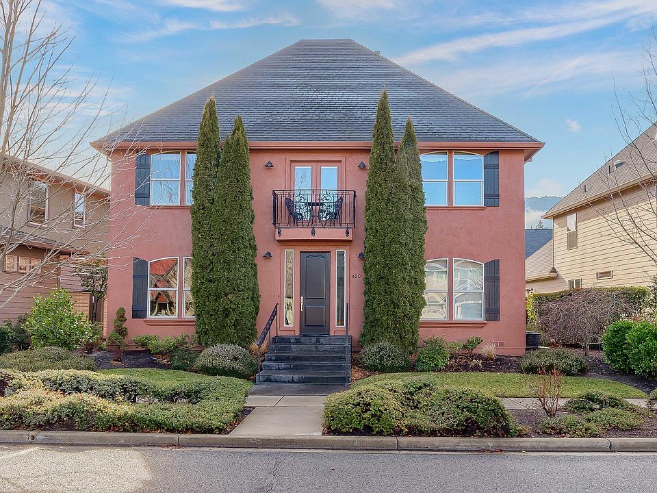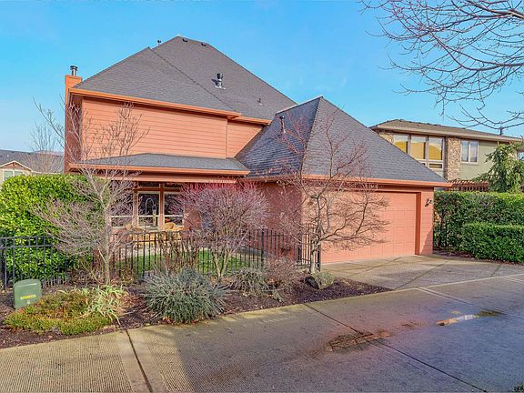 This timeless Mediterranean-style home has high ceilings and elegant archways, a formal dining room or library area; an open great room: a living space with beautiful gas fireplace/mantle; an eating or play area; and a large kitchen with stainless steel convection oven, microwave, refrigerator, and Jenn-Aire gas cooktop on the kitchen island. Ample cupboards, drawers and large pantry. A bedroom with walk-in closet and adjacent full bath completes the main floor. A secluded backyard covered patio is perfect for outdoor entertaining. The beautifully curved staircase with oak and wrought iron railing leads to the spacious 2nd floor master suite, with hardwood floors, gas fireplace and sitting area. The luxurious master bath has double sinks, travertine countertops, a deep jetted tub, tiled double shower and large closet. Two additional wood-floored bedrooms and a charming outdoor balcony have Grizzly Peak views in the distance. The 2nd floor also has a full bath and laundry room.
