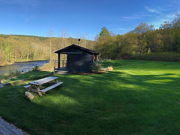The moment you step onto the property, nestled between two state forests, you will feel yourself relax. Enjoy your morning coffee on the deck, listening to the river and watching the birds fly by. If you are lucky, you might even see a bald eagle. Evenings can be spent around one of the fire pits, roasting s'mores and star gazing. The inside of the home has the perfect blend of country charm and modern amenities. The chefs kitchen boasts a Wolf gas range and subzero fridge. The large living room with cathedral ceilings is full of light in all seasons, with french doors opening out to the wrap around deck. The first floor also features a bedroom with bath. The room is currently being used as a den. It has a built in Murphy bed for when you want to use it as a bedroom. There is also a large mudroom on the first floor off of the kitchen and outdoor shower. The master bedroom and one guest room are on the second floor. The master bedroom has floor to ceiling windows overlooking the river and nature for complete serenity. The third floor has a large open room with views of the river and expansive lawn. Perfect for office, play, exercise or studio. There is also an additional room, currently being used as a bedroom. There are FOUR ski mountains less than an hour drive away!