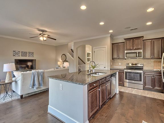 • RoomKitchenFeatures: Granite Counters, Kitchen Island, Pantry, Recessed Lighting, Eat-in Kitchen, Floors-Hardwood, Cabinets-Stained, Backsplash-Tiled