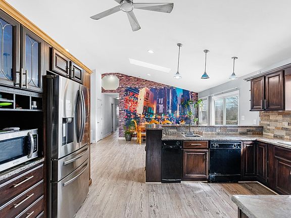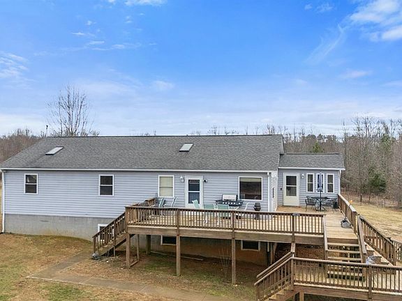 LET'S GO FISHIN! Situated on 8.8 Acres, this home is for the seeker of privacy and tranquility! Bring the animals! Includes living room, dining room, kitchen with stove, refrigerator, dishwasher, trash compactor and microwave. The mini fridge does not convey but behind it is a wine fridge hookup! Gas heater for backup. Heat pump less than a year old! And you'll love the custom countertops! Three bedrooms and 2 baths-each with 'jacuzzi' tubs! The full basement is poured concrete and several rooms have been partitioned including plumbing for a third bath! The decks give you a view from each and you can see the stocked pond just waiting for you to enjoy a day of fishing (Catfish, Bass, crappie and blue gill), or spend a day canoeing! (pond is shared with one other family). This is what you've been waiting for at a price you can afford! Don't hesitate! $289,900