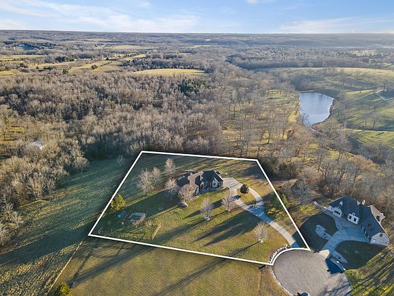 Remarkable brick & stone home on 3 acres in the gated subdivision of Vintage Springs! This home is packed full of features including: 6 bedrooms, 4.5 bathrooms, soaring ceilings with walls of windows, fresh paint, a basement with wet bar, John Deere room, outdoor kitchen, garden, and so much more! Inside, discover a front formal dining room to the right of the foyer, and hardwood floors through the main living area. The living room features vaulted ceilings, a 2-story stone fireplace, and built-ins. The chef's kitchen provides a gas range, double wall oven, granite counters, and a walk-in pantry. The main floor primary suite offers a jetted tub with a stunning view, double vanities, walk-in tiled shower, and walk-in closet. Completing the main level is 2 more bedrooms, a full bathroom with dual sink vanity, powder room, and laundry room. Upstairs is a perfect man-cave space or teenager bedroom with a private full bathroom. The basement will be a joy to entertain in with a full wet bar, pool table space, office, bedroom, full bathroom, John Deere room, exercise room, and safe room. Outside, there is an outdoor kitchen with barstool seating, paver patio with fireplace, garden, and upstairs deck. Special features include (3) 95+ HVAC zones, whole house water purifier, water softener, built-in humidifier, irrigation system, sound system with speakers throughout, and climate controlled storage.