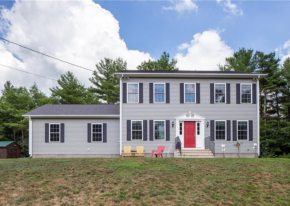 Almost 13 acres surround this Gorgeous 2015 Colonial! The kitchen is equipped with Quakermaid Cherry cabinets with recessed lighting underneath, quartz counter tops, an Island with a prep sink & a propane stove as well as a half bath and laundry hookups right off the kitchen. The kitchen then flows nicely into the sun-filled dining area with hardwood floors throughout the whole first floor. The living room is complete with surround sound and a gas fireplace for all of your entertaining needs! There is also a bonus bedroom on the first floor with a good sized closet. Upstairs you will find 2 perfect sized bedrooms with California built in's in all closets, a full bathroom with a double vanity as well as your master bedroom with a generously sized tile shower with multiple shower heads and a double vanity as well. Almost 1000 square feet of clean, dry basement is ready to be finished! With a shed wired for electricity and a two car garage with cold and hot water hook- ups, there is nothing you need to do but move in! Sellers are motivated as they are building a new home that is near completion.
