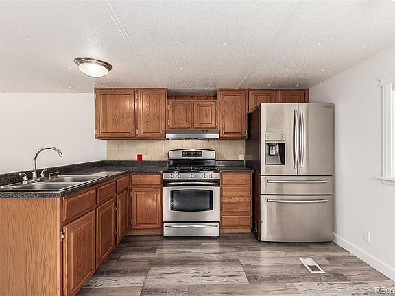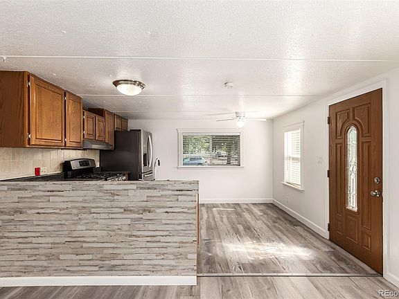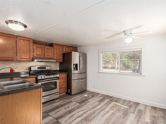 Discover the allure of this fully-fenced manufactured home in Lochbuie! The recently updated interior welcomes you with an inviting living room, featuring a cozy fireplace, a soothing palette, sleek wood-look vinyl flooring, and abundant natural light, creating the perfect atmosphere for entertaining. The heart of this home is the eat-in kitchen, complete with stainless steel appliances, enough counter space for meal preparation, tile backsplash, and lovely wood cabinetry. Three perfectly sized bedrooms, two connected by a convenient Jack & Jill bathroom, provide plush carpeting and comfort. The immaculate bathroom showcases a floor-to-ceiling tiled shower for added convenience. Outside, a storage shed for garden tools and a detached workshop area awaits! Take advantage of the large side yard, offering plenty of space for parking or outdoor fun! The property is just minutes away from dining spots and has efficient access to the highway. What's not to like? This move-in-ready abode is the one!