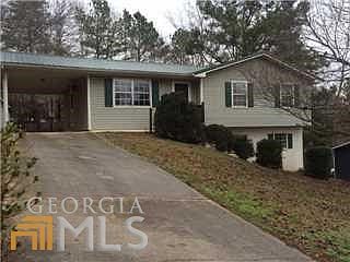 BUYER TO VERIFY SQUARE FOOTAGE. Large rancher with easy maintenance vinyl siding and metal roof. Nice backyard with pool, deck plus outbuilding. Brand new hvac unit, brand new stove and refrigerator. All new interior paint, ceiling fans. Full finished basement with possible 4th bedroom. Lots of house for the money. Seller is a licensed agent in State of Georgia. All information provided is deemed accurate but is not warranted.