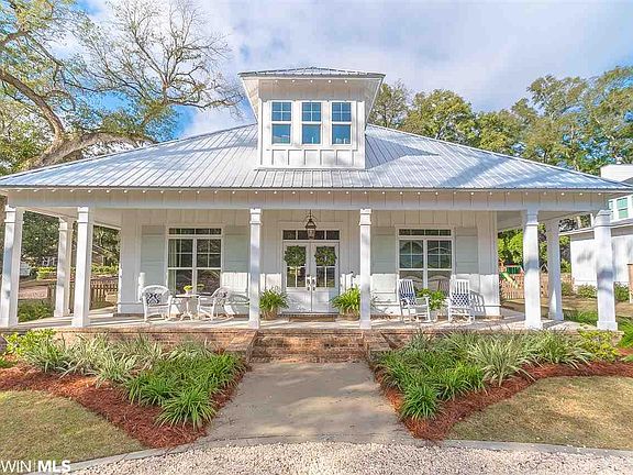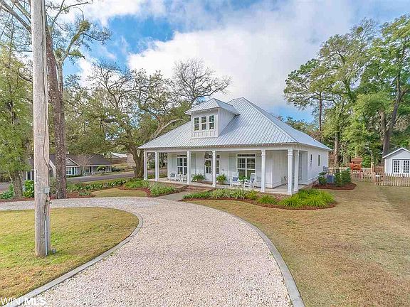 This gorgeous, newly, custom built, 4 bedroom, 3 bath, Gold Fortified home is just the home you've been waiting for! As soon as you enter the front door you feel the warmth and comfort of this home, with its beautiful wood floors throughout the main level and the abundance of natural light. The high ceilings give presence and grandeur. You will appreciate the open floor plan this home offers making it an entertainer's delight. The large eat in kitchen boasts a huge center island, tons of cabinets for storage, quartz counter tops, subway tiled backsplash, walk in pantry, a breakfast area with custom built in bench for plenty of seating. There is also a separate dining room off to the front of the home as well as a separate wine/bar/serving area. The spacious living room features a gas ventless fireplace with built in book shelves on both sides and speaker system. The master bedroom is located on the main level of the home and features a stunning turtleback ceiling and the master bathroom's large stand alone soaking tub is just the place to wash away the worries from the day! Master bathroom also has a separate shower, double vanities and a walk in double closet. Also on the main level is a second bedroom and bathroom as well as the laundry room and custom built in mud rack. Head up the stairs to find 2 more bedrooms, a bathroom, the cutest reading nook with an outdoor view and the playroom/office space. Enjoy the beautiful southern weather on your front, back, or side porch, or in your large fenced in back yard. If more storage is what you need, then you're in luck because there is also a separate outdoor storage that matches the homes aesthetic perfectly! Prime Location in downtown Fairhope for you to hop on your golf cart or take a little walk to all of the restaurants or shops or to see a sunset on Mobile Bay!