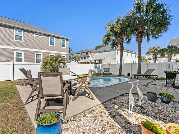 NO HOA! This fantastic 5 bedroom, 4-1/2 bath home is less than 1/2 mile walk or golf cart ride to the beach. Golf cart garage with storage. Also, golf "cart parking only" lot at end of Woodland at the beach. This lovely raised beach with salt water pool is being sold fully furnished and can boast complete with accordian hurricane shutters. Included are beautiful rockers on the wrap around deck upstairs with more rockers in the relaxing conversation area on the ground floor that leads to the fenced pool area that invites fun with friends or just enjoying quiet time! New roof in 2022, new HVAC in 2018, hurricane shutters, outside shower for salt and sand, new walk-in shower in the master bath installed in 2023. This home is bursting with many upgrades. There is an elevator shaft built into the home that's now serving as a pantry. Conveniently located near Garden City Pier and the Murrells Inlet Marshwalk providing you with easy access to dining, shopping and Fun, Fun, Fun! This house is a Must See! Schedule your tour today!