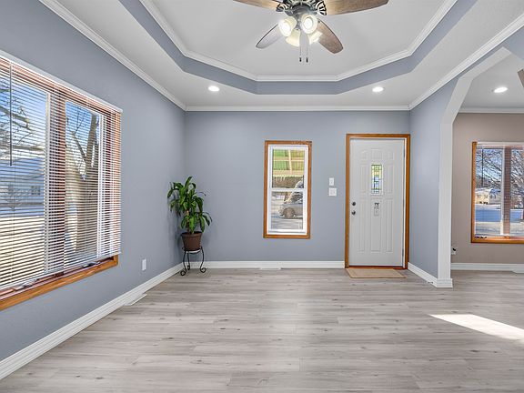 On the corner of charming and fresh, this 2 bed, one bath home is exactly what you need. Located in Lamont, a quaint town on the west edge of Backbone State Park, with views that are nothing short of beautiful. Siding, flooring, fixtures & more! From the moment you walk up, everything has been refreshed so you won’t have anything to worry about. You’ve got smooth new sidewalks leading up to your covered front porch. Inside of your home you’ll see the new flooring installed in all of the home. Great sight lines from the living room, through the dining & into the kitchen. In the kitchen are beautiful cabinets, new countertops & appliances! A great full bath is located right off the kitchen. There is a second entrance directly into the large mud room area on the front of the home which connects to both the kitchen and the laundry area. From the laundry area you can walk right out to your new concrete deck. The two bedrooms are off of the living & dining room. Outside, the yard offers low maintenance with its size. There is also a shed connected to the house for things like bikes, lawn mower, shovels. The opportunity for a house so ready for you doesn’t come often. Don’t miss this one! Call your agent and make this the house you come home to!