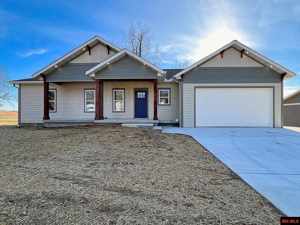 Introducing a stunning New Construction home! This 3-bed, 2 bath beauty spans 1650+/- sq ft with 9 foot ceilings, showcasing a chef's kitchen with granite-topped island & all stainless appliances. Enjoy dual vanities in both baths, luxury vinyl plank throughout entire home, large walk-in closet in master & separate utility room. Concrete siding, poured concrete foundation, 2- car attached garage, all nestled in a quaint & quiet neighborhood. 9 miles to Baxter Health Center & less than 2 miles to the majestic White River $299,900.00