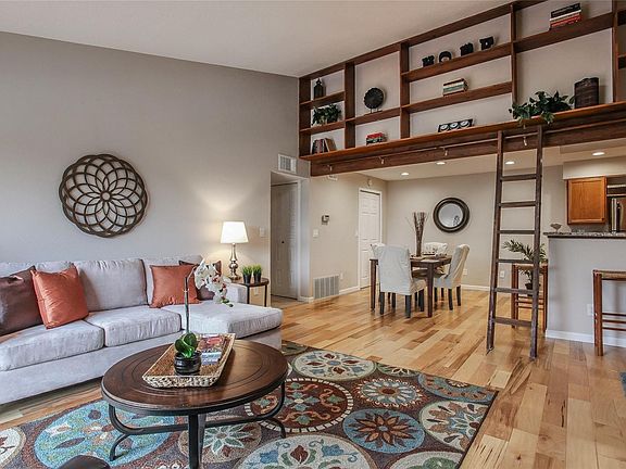 Beautifully updated 2 bed/2 bath penthouse condo with vaulted ceilings, skylight, bookshelf w/ sliding ladder, stone fireplace, and balcony. Newer carpet, paint, engineered hardwood floors, granite counters, stainless appliances and separate laundry space. Great location with easy access to 6th Avenue, I-70, light rail station, St. Anthony's Hospital, Red Rocks College, Union Square restaurants, Colorado Mills mall, and plenty of trails and open space.